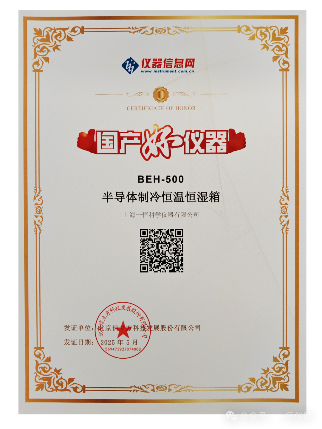 “國產(chǎn)好儀器” 2025年度榜單 丨上海一恒科學(xué)儀器有限公司半導(dǎo)體制冷恒溫恒濕箱實(shí)力入選